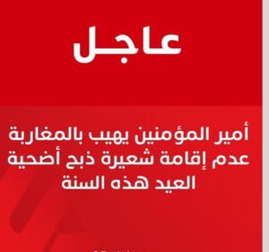 ومن منطلق الأمانة المنوطة بنا، كأمير للمؤمنين والساهر الأمين على إقامة شعائر الدين وفق ما تتطلبه الضرورة والمصلحة الشرعية، وما يقتضيه واجبنا في رفع الحرج والضرر وإقامة التيسير، والتزاما بما ورد في قوله تعالى: “وما جعل عليكم في الدين من حرج”، فإننا نهيب بشعبنا العزيز إلى عدم القيام بشعيرة أضحية العيد لهذه السنة. وسنقوم إن شاء الله تعالى بذبح الأضحية نيابة عن شعبنا وسيرا على سنة جدنا المصطفى عليه أفضل الصلاة وأزكى السلام، عندما ذبح كبشين وقال: “هذا لنفسي وهذا عن أمتي”.