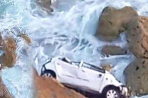 و يُرجّح أن السيارة تحركت بشكل عرضي من حافة المنحدر قبل أن تهوي نحو الأمواج.في غياب التقيد بشروط السلامة والوقاية واحد الحيطة والحذر في هذه المناطق البحرية الخطيرة .
